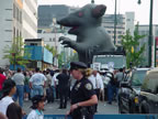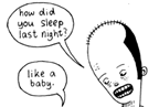 | After a night of a revellry, a rude awakening softened by myopia, and yours. TO: Mr. L. well, only one. what a fucking morning. i got up because the alarm was beeping, and i remembered Geena's tale of hearing the alarm for half an hour every morning (presumably from her mom's house). so getting up seemed the thing to do. wrong. wrong. wron . . anyway, i got into the kitchen and every 30 seconds there was a high pitched beeping. i'd hear the beep and turn and start to walk to my room, assuming it was the snooz alarm fucking up. then the beep would stop, and i would turn around and step in cat puke on the kitchen floor. i'd look for a paper towel, then head to the bathroom for toilet paper when the beeping would happen again, so i'd head to my room in case it was the snooz alarm, turn around when it wasn't, and then step in cat puke even worse (not wearing glasses). finally, after cleaning my feet, stepping in cat puke, and cleaning my feet again, i broke the cycle by ignoring the beep and went into the bathroom to shower. Missy T. got up later and we talked a bit, and then she got in the shower. i put my glasses on and walked to the front door. then i heard the beeping from the kitchen again, turned around, and there was a dead rat on the floor by the water dish. um. glad i got rid o it before Missy T. put her contacts on! anyway, the beeping is probably the white phone in the kitchen is askew, so gently straigthen it if it keeps happening. and wear shoes. listen, tonight i'm coming right from work with some of the xmas album folks, would you mind taking the big packet of chicken out and just leaving it out to thaw around 3 or so? putting it in the fridge won't do it. and also, if you get the chance to make things look a little cleaner as opposed to even worse, that would be a big help, too. i'll do something nice for you, like clean up a couple of dead rats and a headless bird or something. be careful! wear shoes! you never know what this shit will do to your sole. | ||||||||||||||||||||||||
